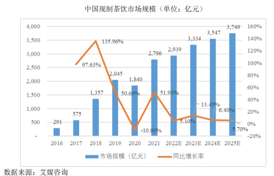 而随着市场渐趋饱和,新茶饮行业将延续增长放缓趋势;据艾媒咨询预测,2023年至2025年,中国现制茶饮市场规模增速分别为13.4%、6.4%、5.7%。