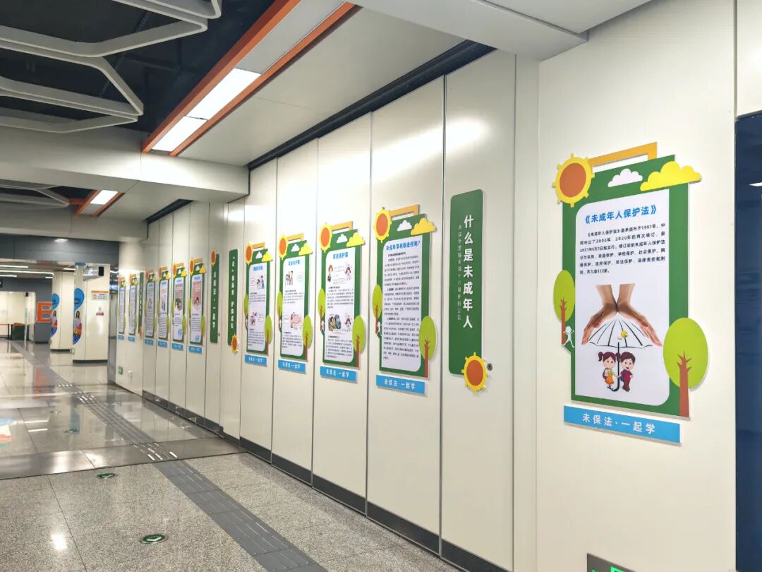 同乐站是郑州中建深铁3号线着力建设的儿童友好车站,坐落于惠济区与金水区的交界处东风路与南阳路交叉口。从A口进站后,您会看到未成年人保护主题文化墙及未成年人保护法相关条款等内容,温暖的色调、诙谐的漫画吸引过往的乘客驻足观看。