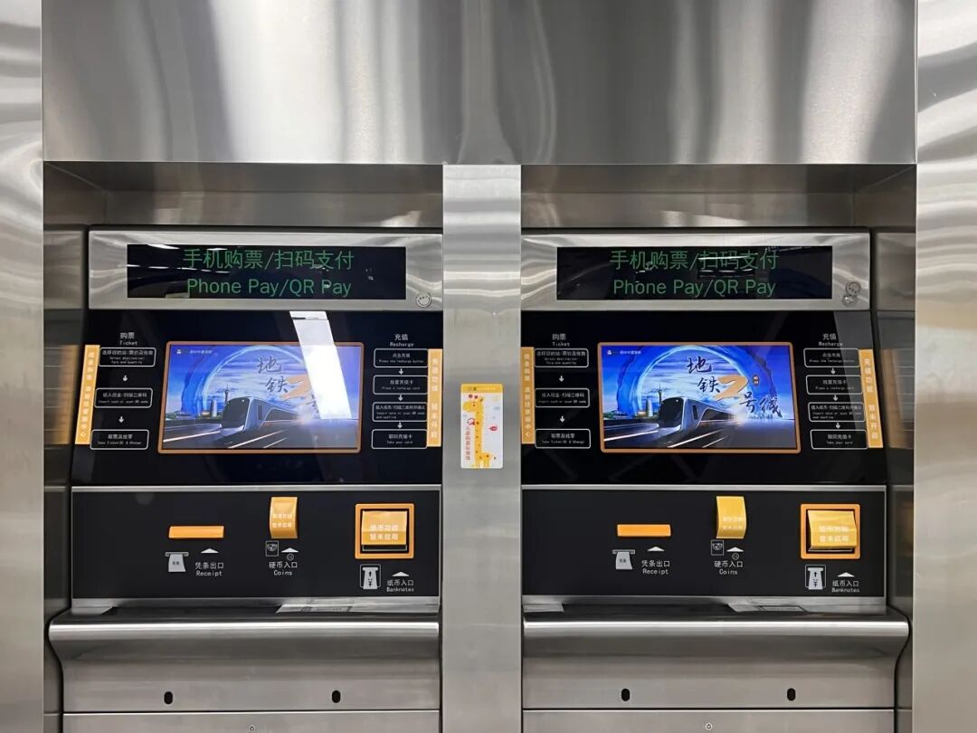 来到自助售票机旁,车站内的儿童购票身高测量线已经悄悄变成了可爱的长颈鹿,当您不知道孩子是否达到购票标准时,可以主动和它“比一比”。如您在同乐站乘车过程中遇到困难,可以寻求佩戴长颈鹿卡通姓名牌工作人员的帮助。