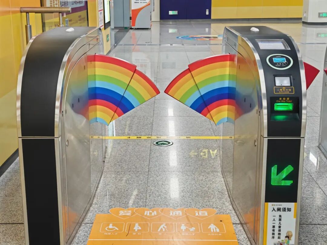 每当雨过天晴,小可爱们最期望的就是看到色彩缤纷的彩虹,偷偷告诉您,同乐站进出站的宽闸机也是彩虹色的呦,让您在乘车的同时就可以看到绚丽的彩虹。