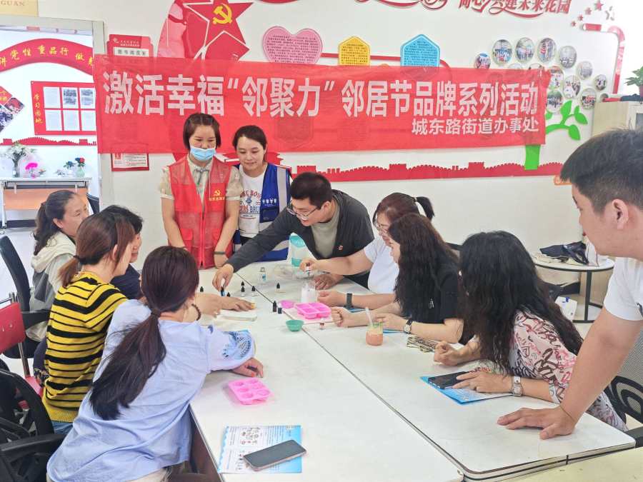活动开始,志愿者老师首先详细讲解了手工皂制作所需的材料和具体步骤,并现场示范了制作精油香皂的过程:融化皂基、加入精油搅拌、倒入模具、选取干花、等待凝固、脱模…...大家有模有样的选取自己喜爱的花瓣和精油,在志愿者的耐心指导下,一块块造型别致的精油香皂便呈现在大家面前。此次活动,丰富了大家的文化生活、文明素养及环保理念,进一步推动和谐社区的建设。同时,还科普了生活垃圾相关知识,让“绿色、低碳、环保”的理念更加深入人心。