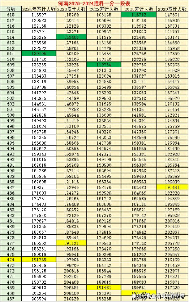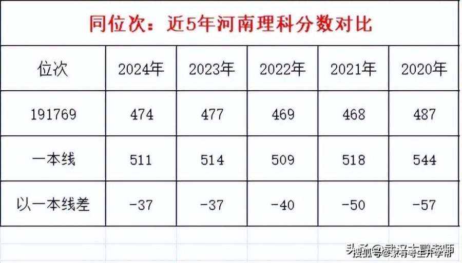 2024年河南理科474分、位次191789,近5年对比