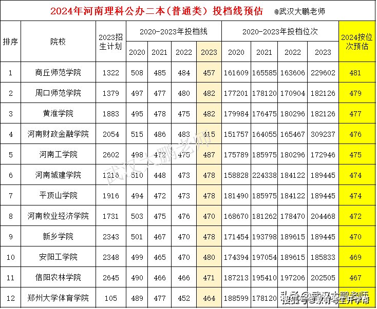 根据2020-2023年近4年投档线位次值,剔除爆冷异常因素,预测商丘师范481分、周口师范479、信阳农林467分……