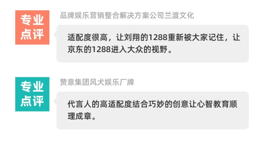 适配度进一步体现在了精神内核和品牌理念上,“冠军速度,秒送好物”的slogan,恰如其分地体现了京东秒送对快速配送和优质服务的承诺,刘翔的形象认知与京东秒送追求的“极致的快”“极致的好”不谋而合,双方的合作成为了品牌理念传达的载体。