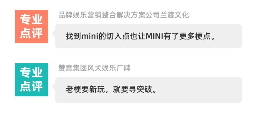 MINI COOPER和于谦老师的联动受到好评,首先是因为他的“玩儿家”精神与MINI品牌相契合。选择于谦老师参与广告拍摄,MINI将有趣、好玩、个性、原创的软性价值传递给更广泛的消费者,加上于谦老师“真实且没有距离感”的相声演员形象,为品牌通过反差赢得了全民的好感和热度。