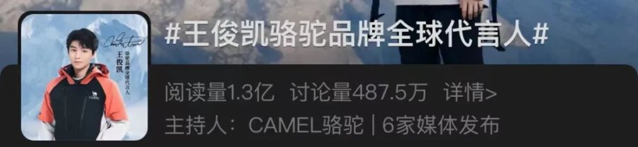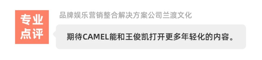 国产老牌CAMEL骆驼与国民级偶像王俊凯的联合,释放出了双倍的影响力,利用代言人的高关注度和号召力,品牌成功扩大了市场曝光,迅速实现了品牌的又一次破圈。
