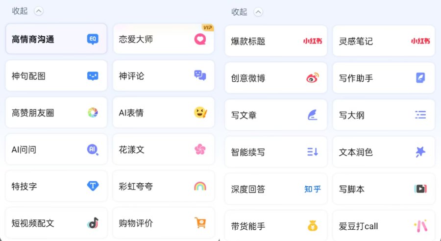 回到使用体验上,在移动端同搜狗输入法一般,都给了一个AI的专门入口,点击打开之后,便是百度输入法提供的AI功能,但其中AI问问这个最重要的功能,却被放置在了不那么靠前的位置,反而是把恋爱大师这种对95%以上人没用但需要收费的功能放在了第二。