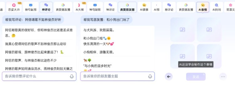 在AI问问之外,神评论的评论和高赞朋友圈的文案,都像是小学生的作文,AI表情的生成只要给出一些跨度,就只能得到“AI还没学会制作这个表情”的回答,而什么写脚本、短视频配文也是十分鸡肋,给人一种很想给用户全量体验但却拉了坨大的的感觉。