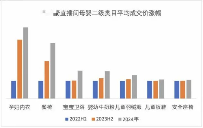 今年10月,一张“李佳琦直播间母婴二级类目平均成交价涨幅”的研报截图在网上流传,内容显示,李佳琦直播间的孕妇内衣、餐椅、宝宝卫浴等商品的成交额均在不同程度上涨。针对截图内容,字母榜联系李佳琦所属公司美ONE方面,对方对此不予回应。