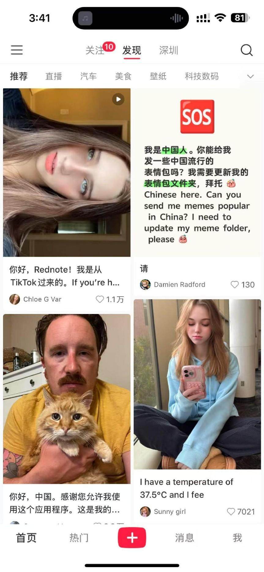 受此消息影响,诸多美国的TikTok用户开始寻找下一个聚集地“避难所”,于是,小红书被选中了。