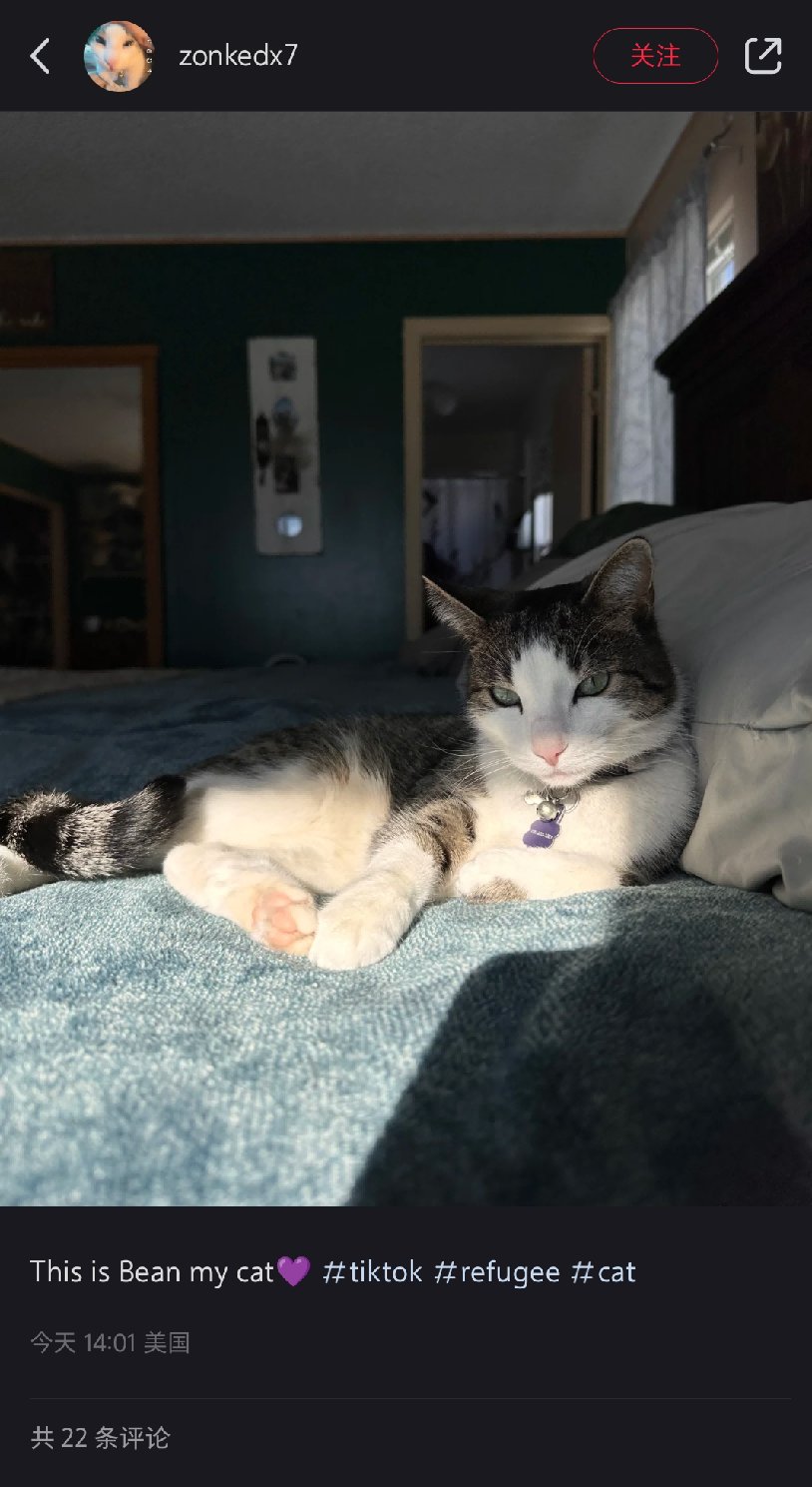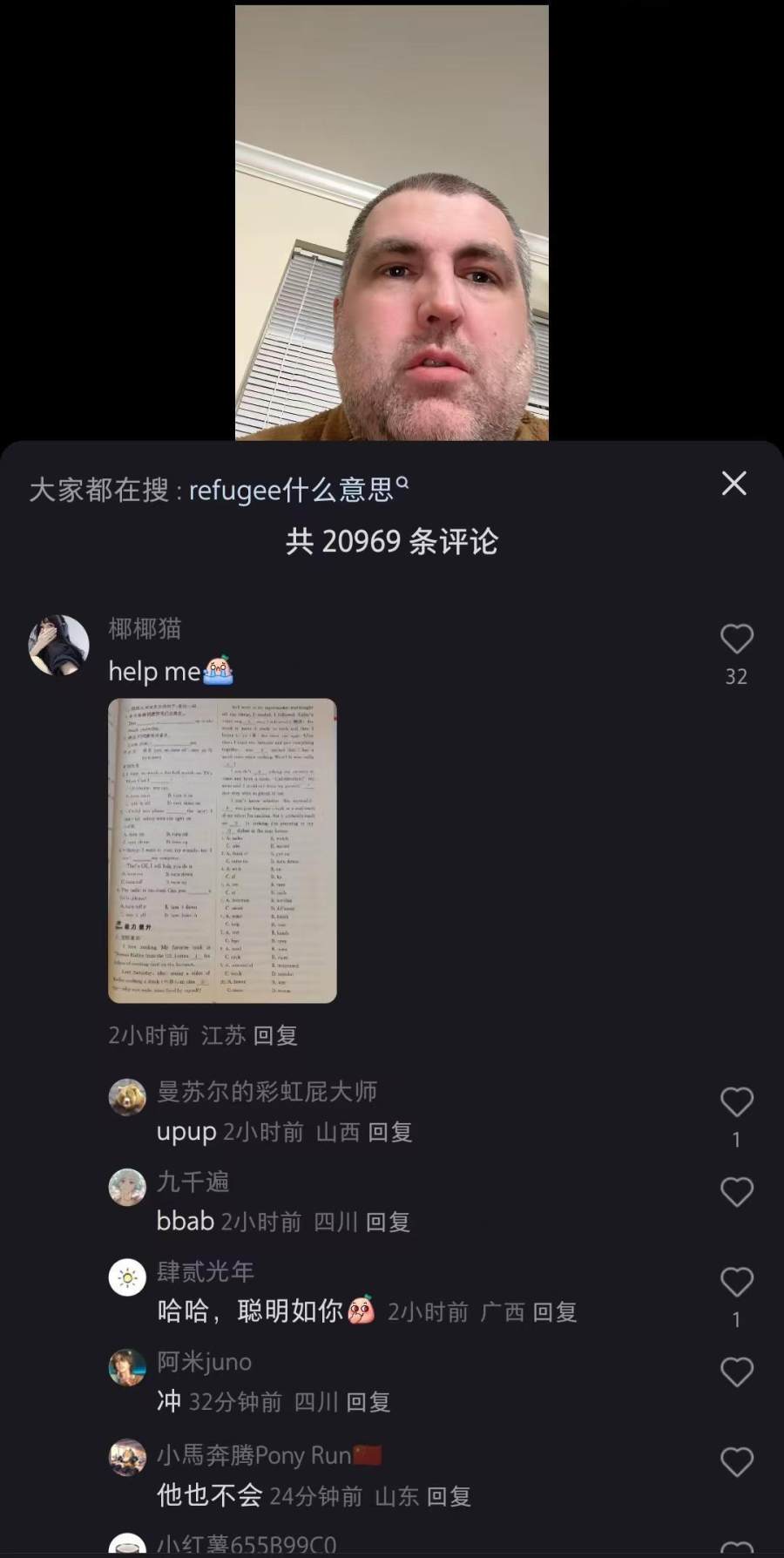 他们有的用经软件翻译的蹩脚的中文发帖、评论,有的甚至直接用英文评论,这些用户在简介中自称是“Tiktok Refugee”,翻译过来就是TikTok难民。