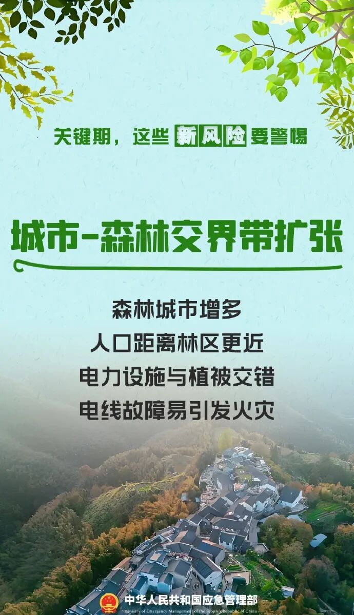 阳春三月,春意盎然。春季气温逐渐升高,降水偏少,大风天气增多。伴随春耕生产、踏青祭祀等生产生活用火增多,森林火灾风险增高。近期,多地陆续进入春季森林防火关键期,以下新风险要警惕!