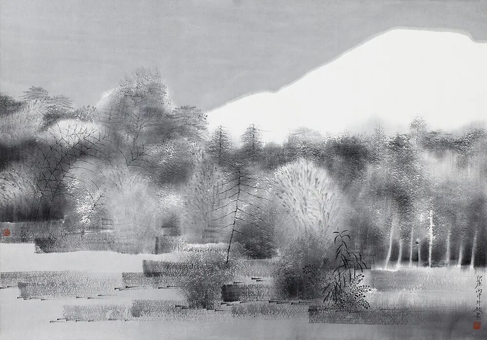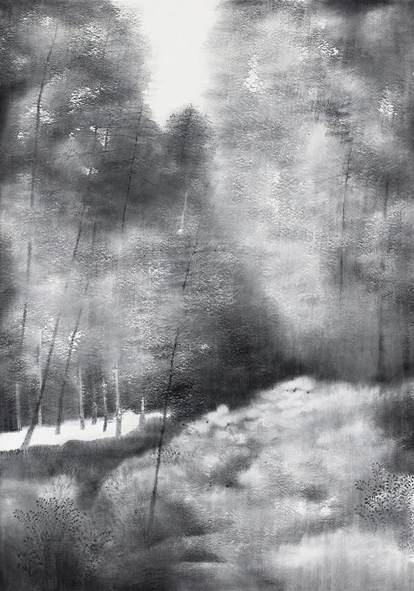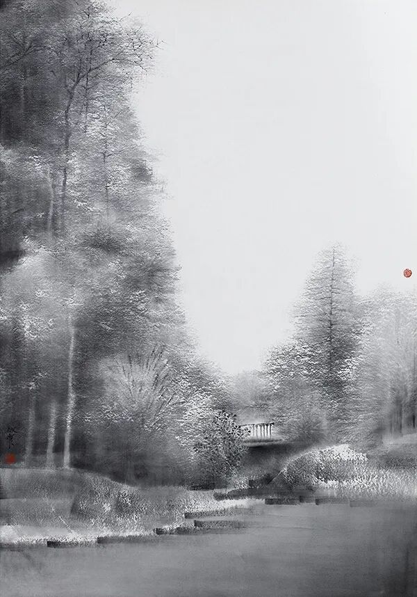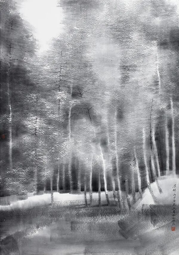 笔墨之外,言语内敛,志存高远。言少而思密,动静皆中。尝言:“笔墨当应时代之问,道统不负千年之重。”其画,如其志;其志,如其境。观其作,不啻为画,亦为文;不啻为景,亦为诗。沉静中有力量,空灵中有结构,现代中见古风,笔端处藏天地。