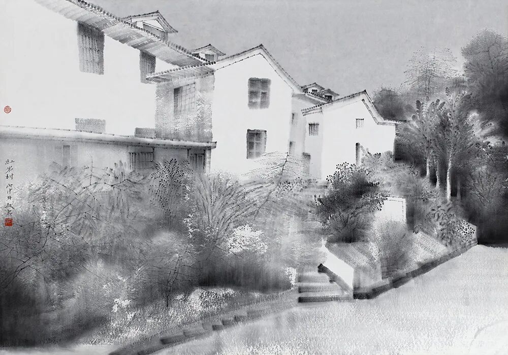 其艺三端并举:精神上循古为宗,技法上推新出己,结构上涉西而不乱中。他不厌旧法,乃重其魂;不拒今理,亦知其用。以古笔写今山,以东方写意托现代构成,成一家之语,立一家之格。画有三重:古意、现实、当代;心有三镜:自省、自然、文明。此三者交织如网,融汇为川。