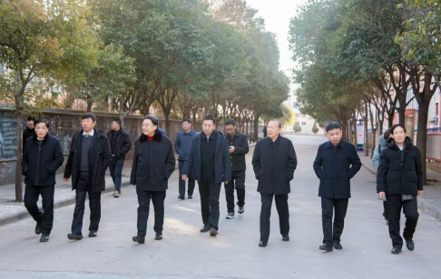 完美细节,追求卓越——登封一中党委书记冯刚省(左一)向弋振立、张国臣、姚待献等介绍校训、校史和学校发展(2025年1月6日)