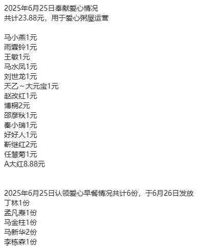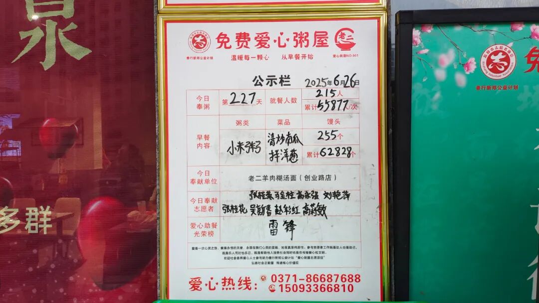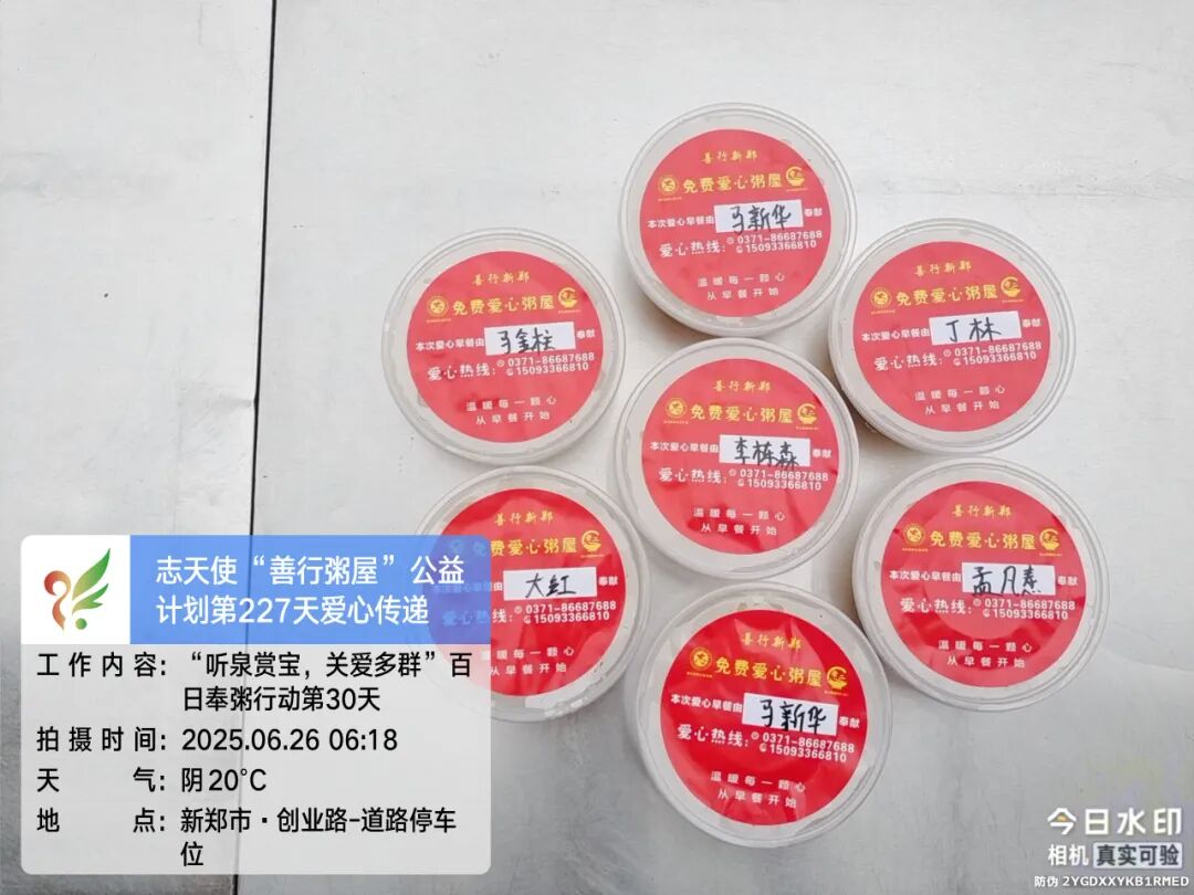 善行粥屋“爱你的365天”第227天,爱心播报:凌晨3点开始备餐7点40分奉粥结束,为空巢老人、留守儿童、环卫清洁工人、进城务工人员等群众奉粥215份,累计56808份;馒头255个,累计63728个;参与爱心志愿者8人,今日早餐由杭州良匠传媒有限公司(听泉赏宝工作室)、老二羊肉糊汤面与爱心人士无偿奉献!温暖每一颗心,从早餐开始!