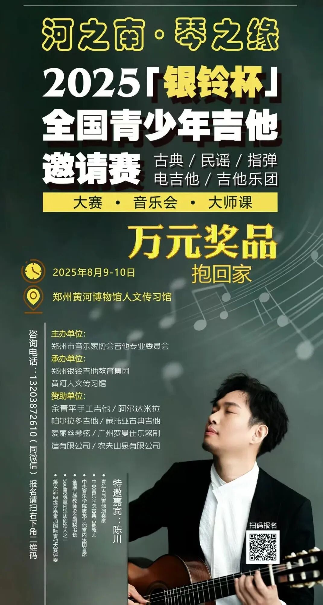 8月9日至10日,河之南.琴之缘2025“银铃杯”全国青少年吉他邀请赛将在河南郑州黄河博物馆人文传习馆举办,将为广大爱好者打造一个集比赛、音乐会、大师课、旅游于一体的音乐盛宴。