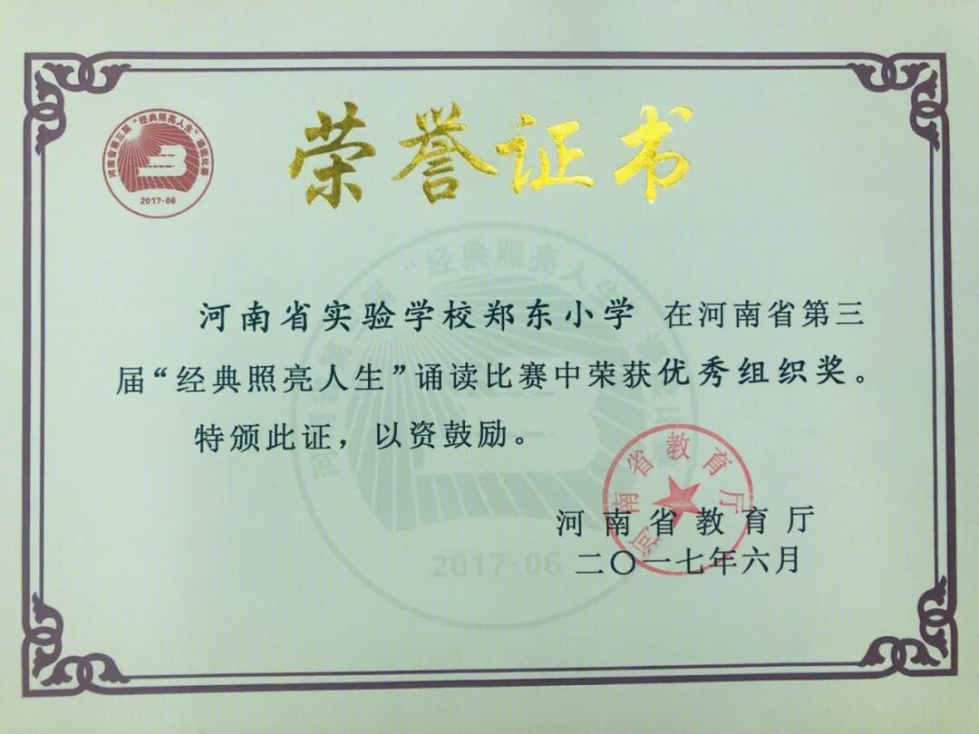 查阅郑东小学的办校史,你会发现:它是首批认定的“中国少年科学院科普教育示范基地”校,先后荣获“人民满意的学校”、“河南省文明学校”、“河南省基础教育实验基地”、“河南省中小学先进集体”、“全国中小学科研兴校示范基地”、“国家曲棍球奥林匹克后备人才基地”、“中国垒球协会软式垒球推广试点基地”、“全国青少年校园足球特色学校”等荣誉称号,是河南省中小学获得国家级、省级荣誉最多的学校之一。