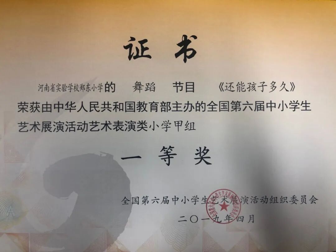 4.河南省第十届少儿文化艺术展演,儿童剧荣获一等奖,同时入选郑州市第二十五届精神文明建设“五个一工程”暨第二十二届文学艺术优秀成果奖。