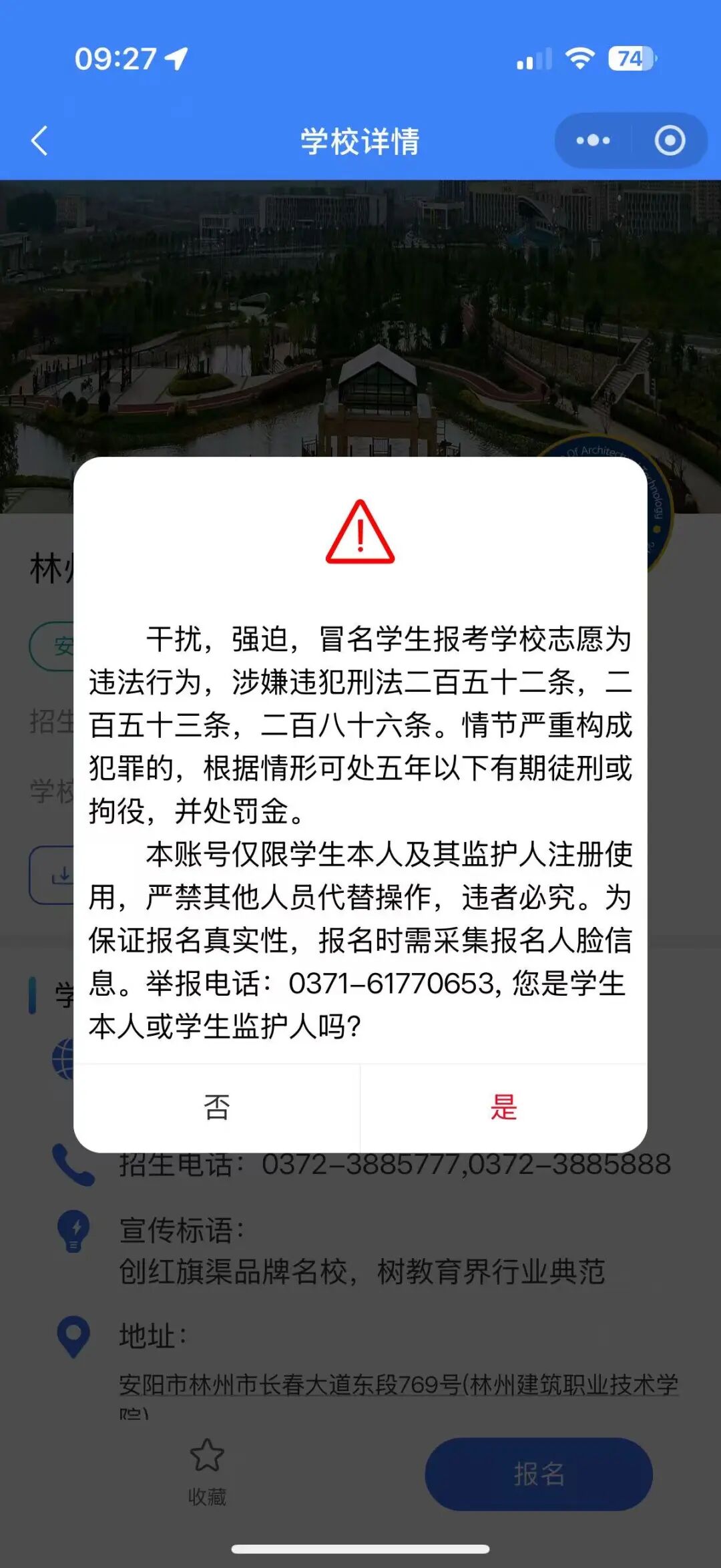 选择意向学校、专业,填报志愿,首次报名需要进行人脸识别;