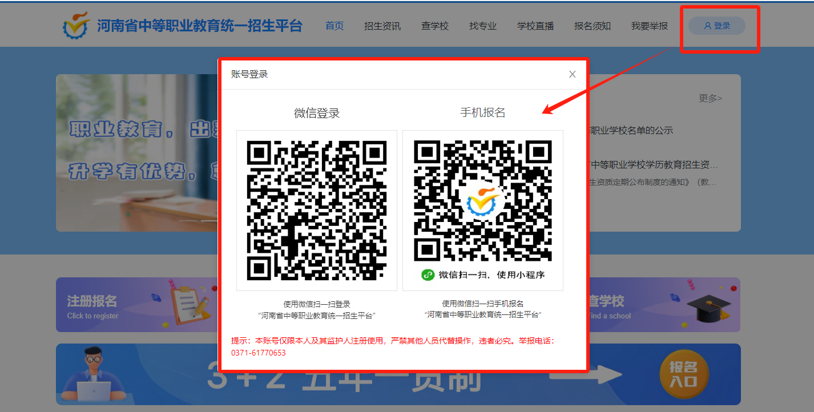 登录账号,招生平台使用微信授权登录,账号仅限学生本人及其监护人注册使用;