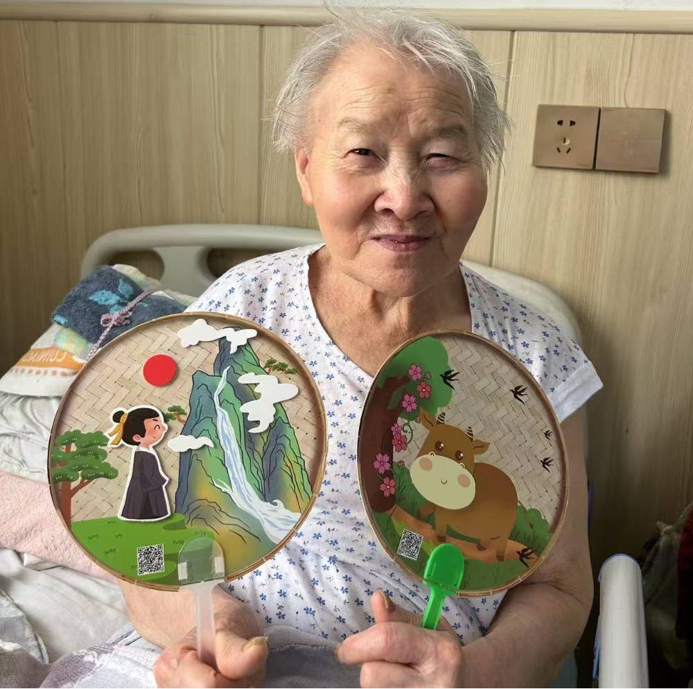 在制作过程中,老人们还不时地交流着绘画技巧,分享着彼此的故事。奶奶笑着举起自己制作的圆扇子;我们也希望,通过这样的活动,能为老人们的生活增添更多的色彩,让他们在享受手工乐趣的同时,感受到社会的关爱与温暖,在晚年的时光里,继续绽放属于自己的光芒。