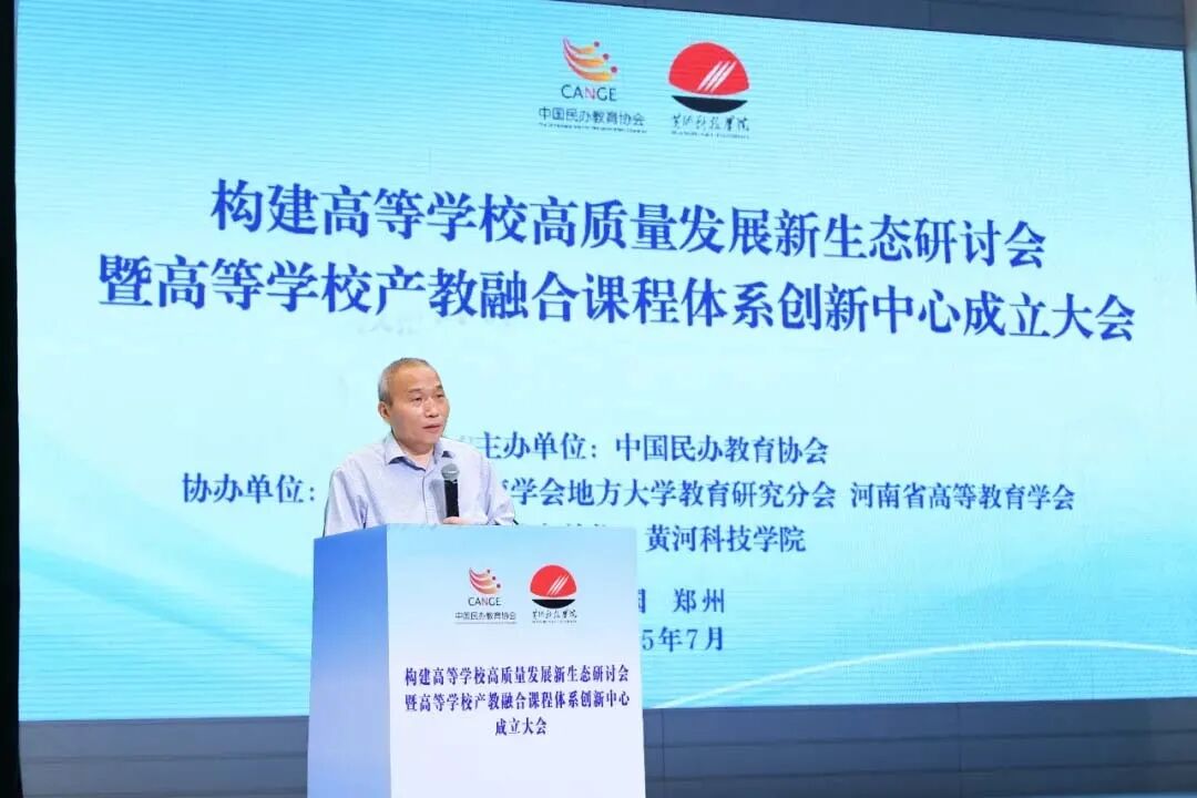 暑期,由中国民办教育协会主办,中国高等教育学会地方大学教育研究分会、河南省高等教育学会协办,黄河科技学院承办的“构建高等学校高质量发展新生态现场会暨高等学校产教融合课程体系创新中心成立大会”在河南郑州黄河科技学院隆重举行。