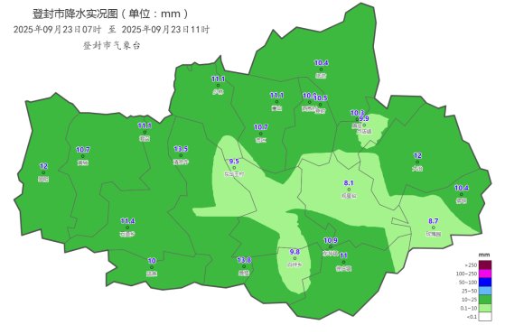 2025年9月23日07时至11时,我市出现中雨,最大降水出现在大冶13.8毫米(图2、表2)