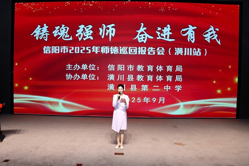 为深入贯彻落实习近平总书记关于教育的重要论述,激励广大教师自觉弘扬和践行教育家精神,2025年9月24日下午,“铸魂强师 奋进有我”——信阳市2025年师德巡回报告会走进潢川县。信阳市教体局教师教育科科长翟娟及报告团成员,潢川县教体局全体班子成员、机关各股室及二级机构负责人、联系乡校工作人员,以及全县各级各类学校党政负责人、师德工作分管同志与一线青年骨干教师代表共同参加。