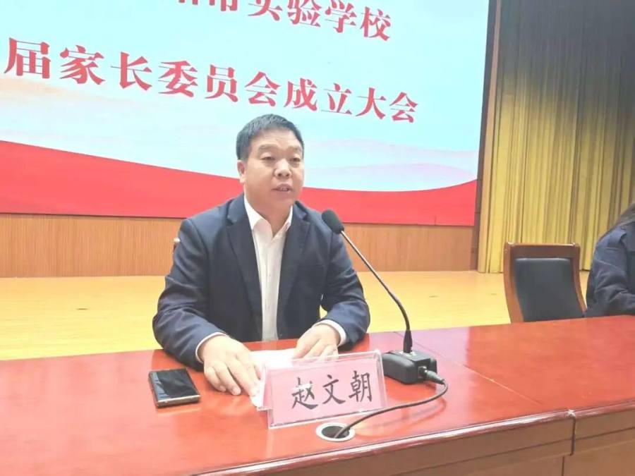 赵校长代表学校发表了热情洋溢的致辞。赵校长对上一届家委会成员的辛勤付出与无私奉献表示了衷心的感谢,对新一届家委会的成立表示祝贺。随后他介绍了学校的发展理念、发展规划以及自建校以来取得一系列的瞩目成绩。他强调,学校各项成绩的取得,离不开全体家长对学校的信任和高度认同。面向未来,他希望新一届家委会能继续发挥纽带作用,积极参与学校管理,为学校发展建言献策,共同促进孩子们的健康成长和全面发展。赵校长的致辞亲切温暖有力量,使参会的家长代表们备受鼓舞。