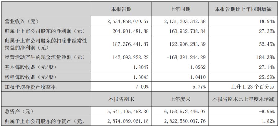 2025年上半年实现营收、净利润双增,营收25.35亿元,同比增长18.94%;净利润2.05亿元,同比增长27.32%。