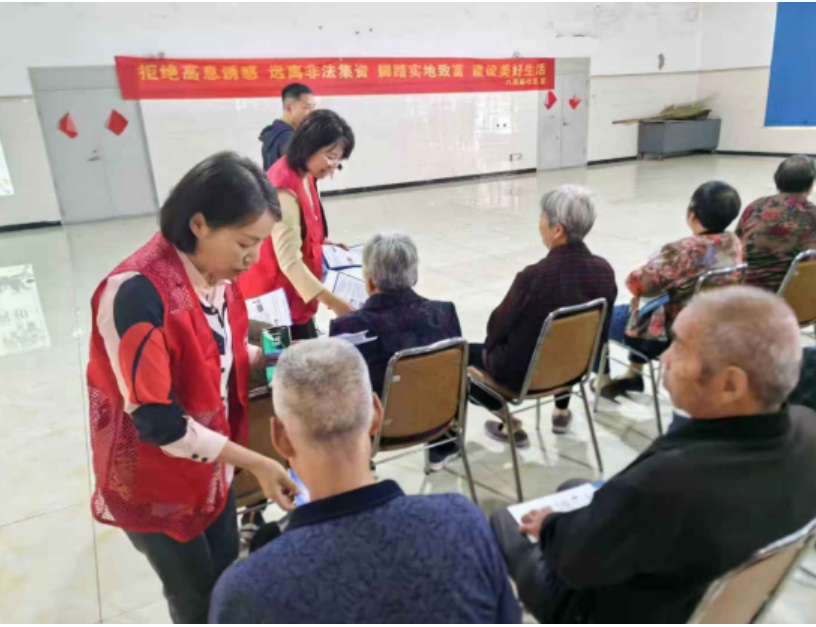 活动过程中,社区工作人员身着红色志愿服,通过发放宣传手册、现场讲解的方式,向社区居民尤其是老年群体,详细介绍“扫黄打非”的具体内容,包括如何辨别非法出版物、远离不良文化信息;同时针对非法集资的常见套路、高息诱惑的陷阱进行剖析,用通俗易懂的语言讲解典型案例,让居民们清晰认识到非法集资的危害。