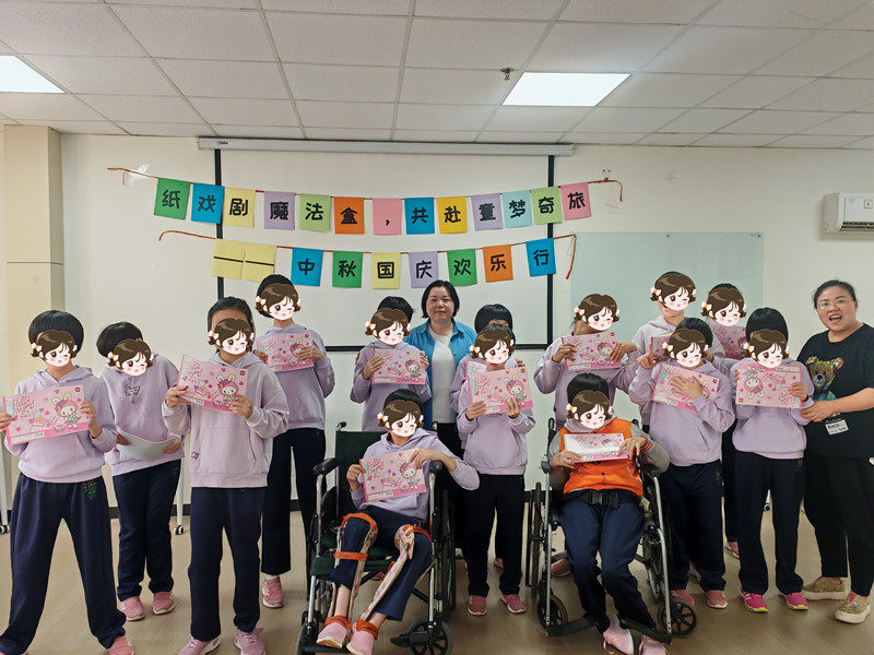 在中秋与国庆双节将至之时,为了让儿童福利院的孩子们感受到节日的欢乐与温暖,2025年9月25日,郑州市儿童福利院携手郑州市管城回族区益星社会工作服务中心,开展了“纸戏剧魔法盒,共赴童梦奇旅——中秋国庆欢乐行”活动。育秀部的18名女童满怀好奇与期待,开启了这场奇幻欢乐的节日之旅。