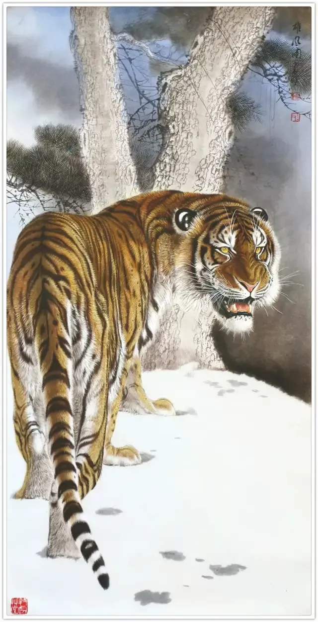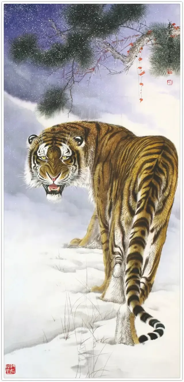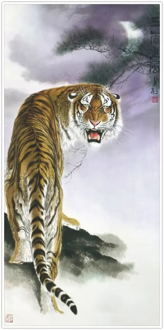 张少石之虎画,不仅是技艺的展现,更是精神的传递。他以虎为媒,抒发了对自然、对生命的敬畏与热爱,也传达了对和谐、对仁道的追求与向往。观其画,如品香茗,余味无穷,令人陶醉。