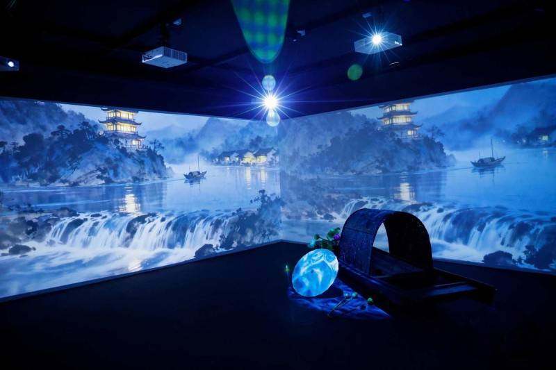 据本次展览策展人张晚庭、许利介绍,《漱遇清照-应是绿肥红瘦》展览分为四个篇章向观众呈现朱老笔耕不辍的艺术状态:心美、灵境、宋韵、艺馨。展览的温馨之处是借助人工智能科技力量,策展团队还原了朱曜奎的家父——朱士杰先生(我国早期著名的美术教育家和画家,与颜文樑先生、胡粹中先生合称“沧浪三杰”,他们创立了在中国美术史上有着重要地位的院校——苏州美专,是中国动画学科的摇篮,上海美术电影制片厂五位重量级导演均毕业于此)1956年创作的连环画《聪明的小白兔》的影视动画作品,并延申出系列衍生品与版画。朱曜奎先生年近百岁精神矍铄,七十多年的从艺从教历程,以传承“沧浪三杰”的“教育强国”理念为指导,深耕艺术教育,“从沧浪三杰到苏州美专”、“从大美术运动到新文人士大夫精神”的教育理念和艺术精神,为建设人类美好家园提供了感人至深的德艺双馨之范式。