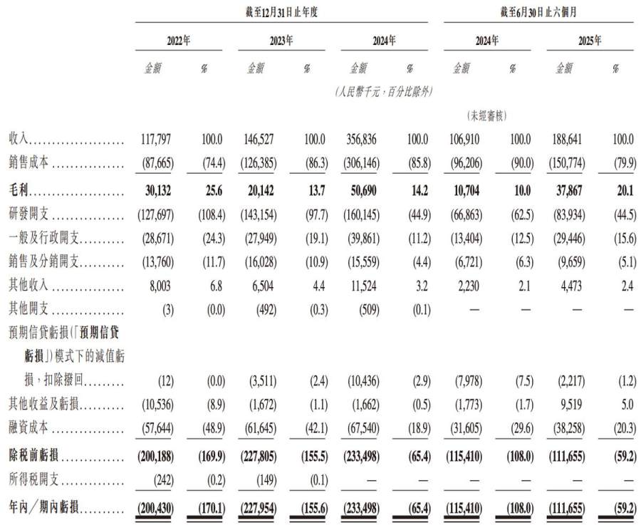 业绩方面,2022年、2023年、2024年度和2025年上半年,魔视智能的营收分别约为人民币1.18亿元、1.47亿元、3.57亿元和1.89亿元,净亏损分别约为2.00亿元、2.28亿元、2.34亿和1.11亿元。