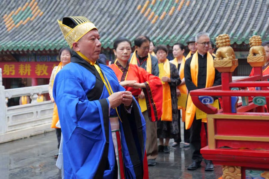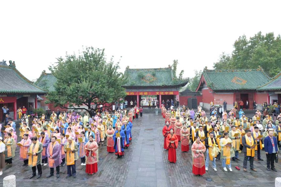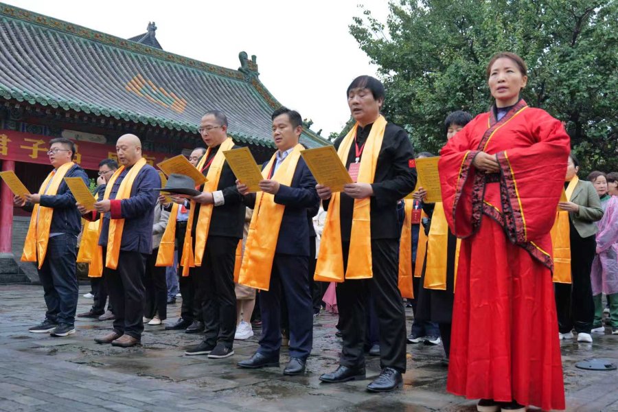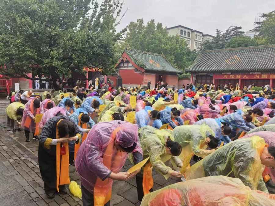 来自来自河南省儒学文化促进会、河南省礼仪文化发展促进会、河南省孝文化促进会、郑州大学商学院EMBA校友会等协办和支持单位的200多位代表,齐聚大成殿前,怀揣至诚景仰之心,以鲜花果蔬,三献之礼,共缅先师,传承文明。