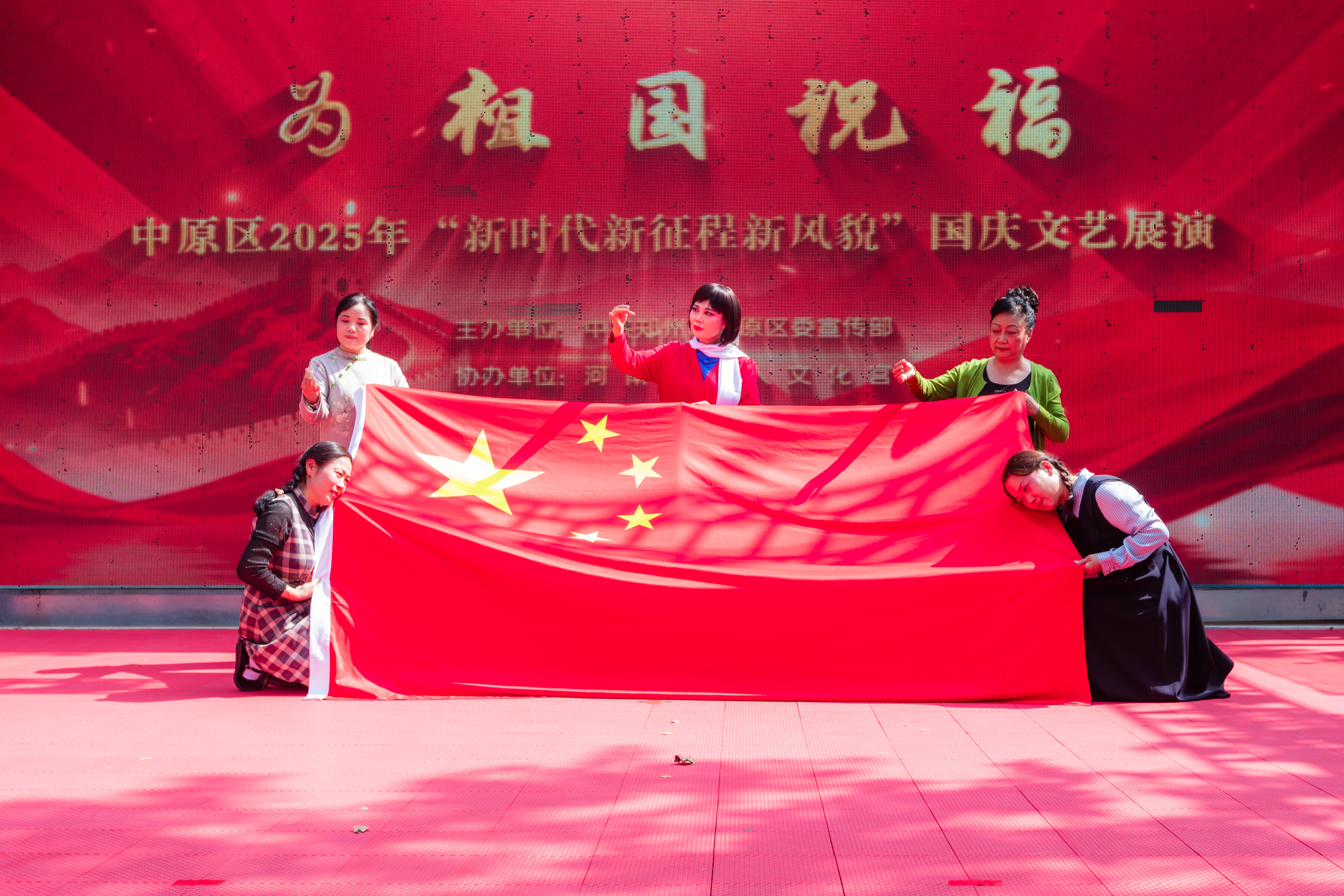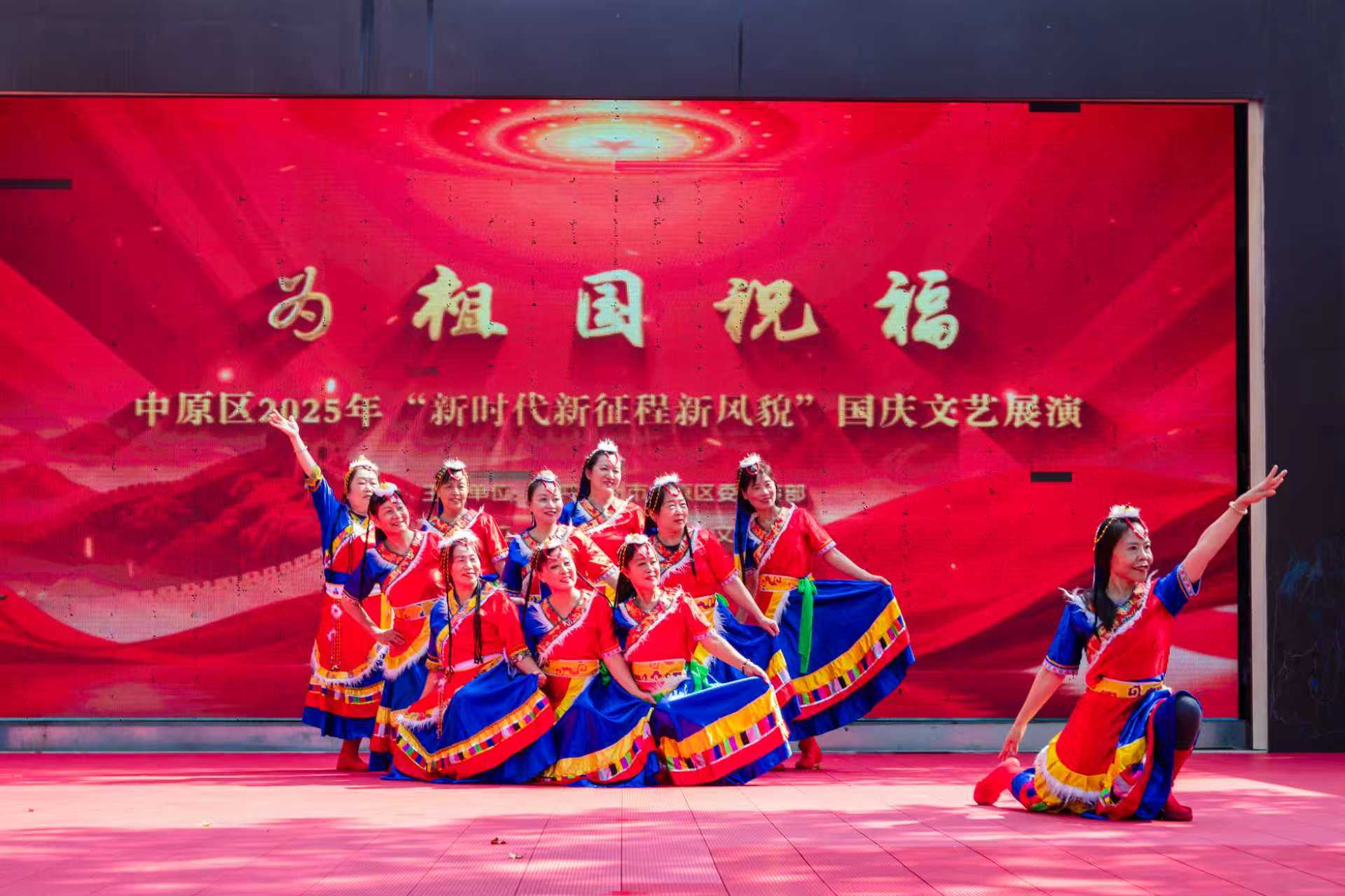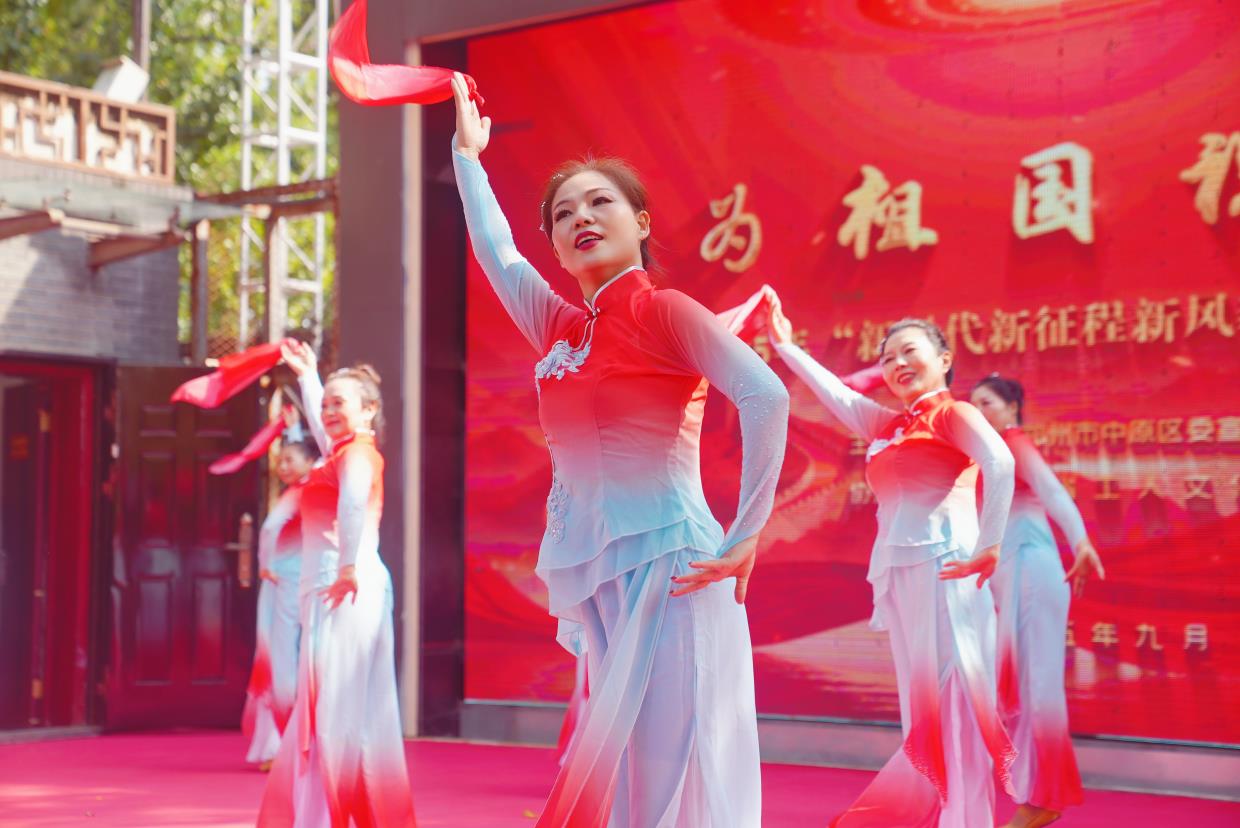9月29日上午,五一公园内旌旗飘扬、欢声笑语。由中原区委宣传部主办的“为祖国祝福”——“新时代 新征程 新风貌”2025中原区国庆文艺活动举行,广大群众以文艺展演的形式歌颂祖国、共庆佳节。