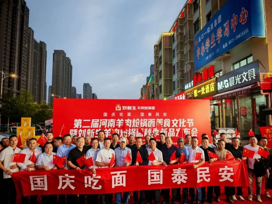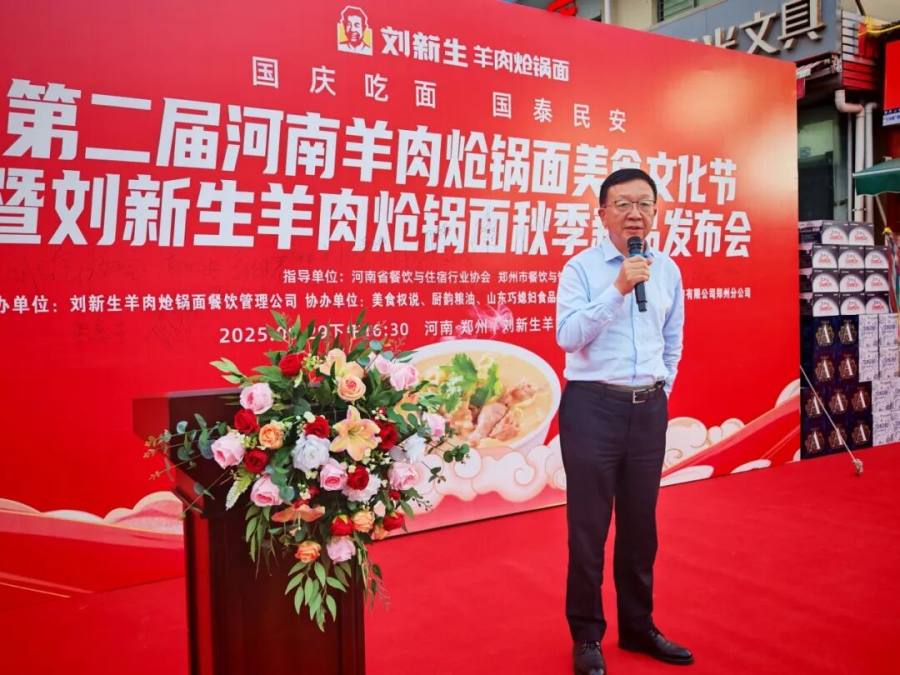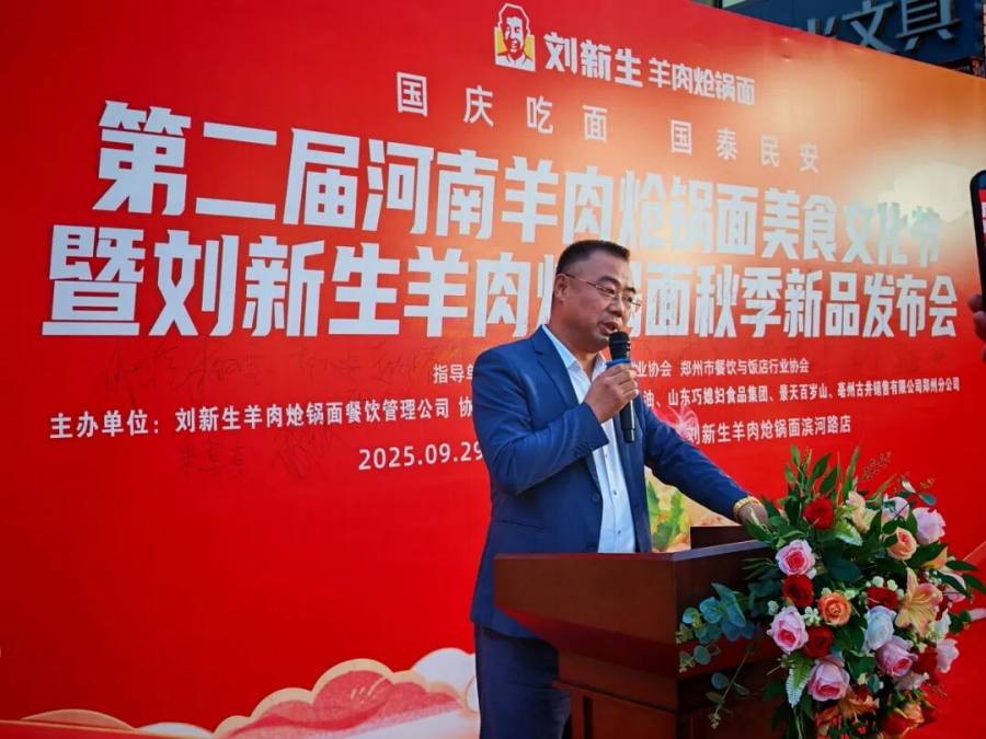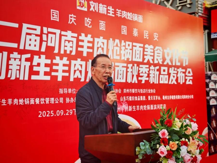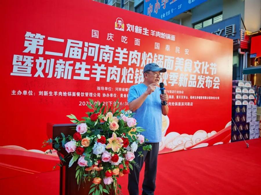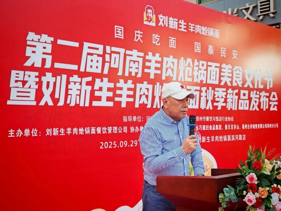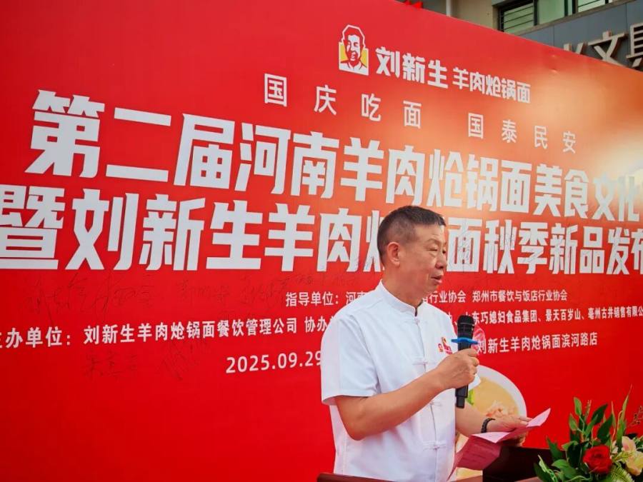 9月29日下午,恰逢中华人民共和国成立76周年之际,“国庆吃面 国泰民安 ——2025第二届河南羊肉炝锅面美食文化节暨刘新生羊肉炝锅面秋季新品发布会” 在郑州刘新生羊肉炝锅面滨河路店成功举办。该活动由河南省餐饮与住宿行业协会、郑州市餐饮与饭店行业协会指导,刘新生羊肉炝锅面餐饮管理公司主办,美食权说、厨韵粮油、山东巧媳妇食品集团、古井贡酒、景田百岁山协办,吸引80余位行业领导、餐饮大咖及媒体代表齐聚,活动以美食为纽带,串联中原饮食文化传承与家国情怀,众人共话豫菜发展,共贺祖国华诞。