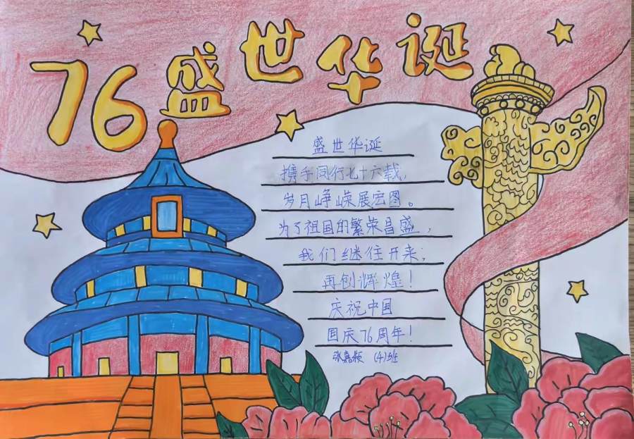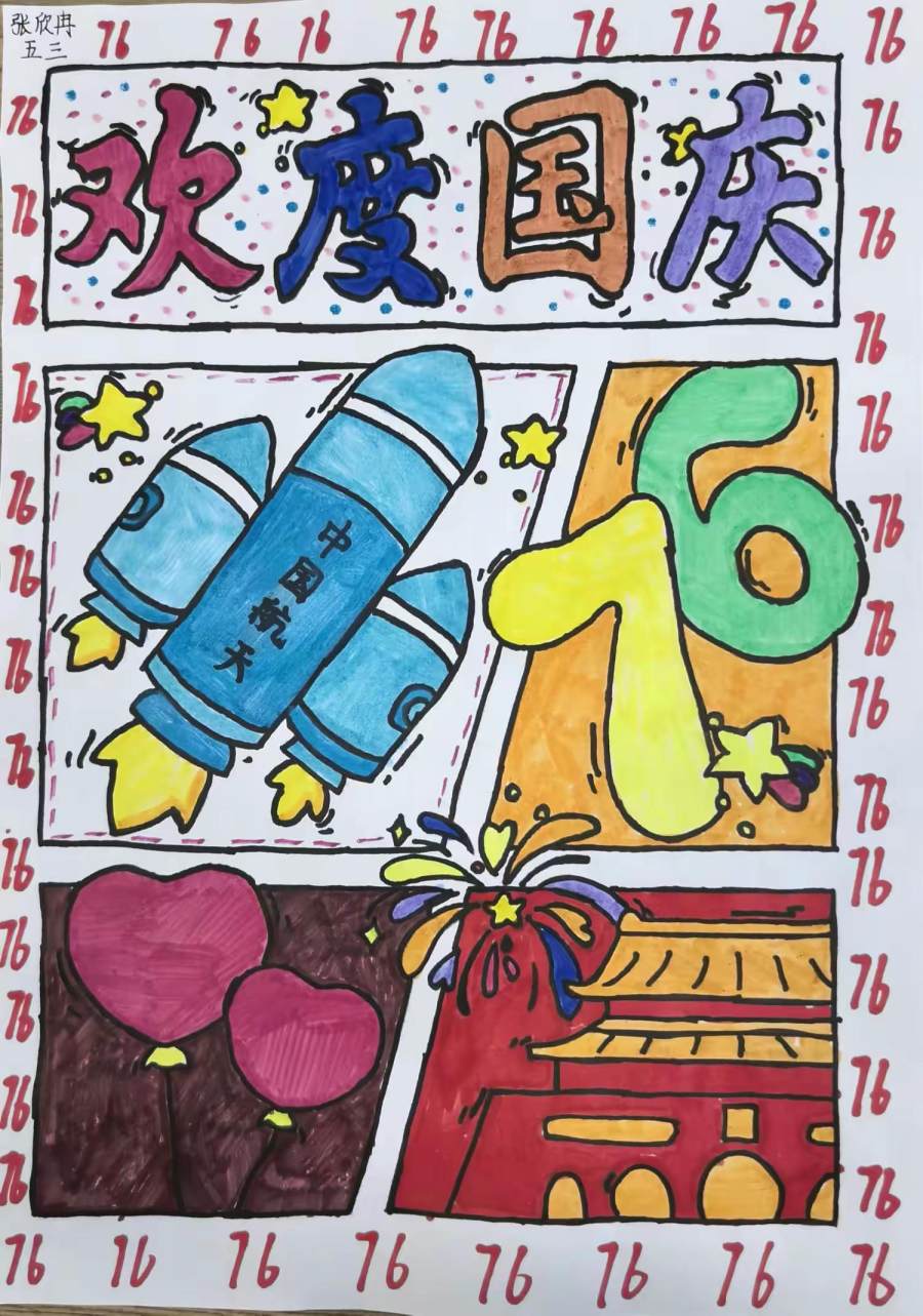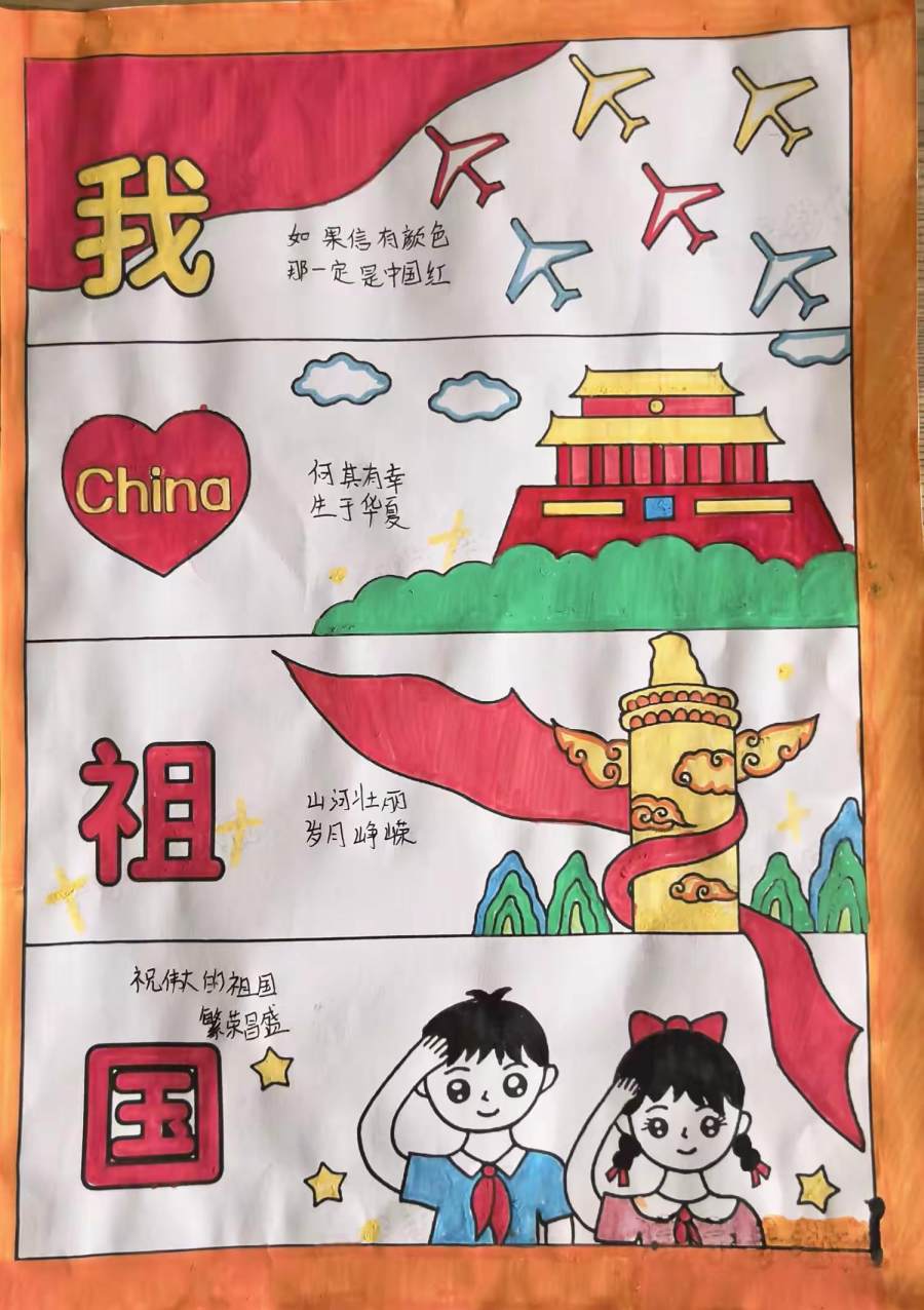 活动期间,队员们还制作了国庆主题手抄报,用画笔描绘对祖国的祝福。一幅幅色彩鲜艳、内容丰富的作品,展现了队员们对祖国母亲的热爱和对美好未来的憧憬。