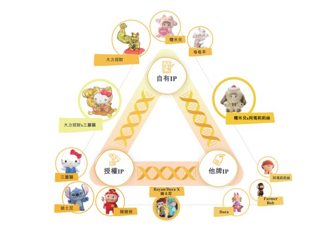 截至 2025 年 6 月,TOP TOY 旗下拥有 17 个自有 IP,主要是卷卷羊、糯米儿、大力招财等,还有最新收购的设计师 IP 尼尼莫;以及 43 个授权 IP,包括迪士尼系列、三丽鸥系列( Hello Kitty )、蜡笔小新、猪猪侠等。