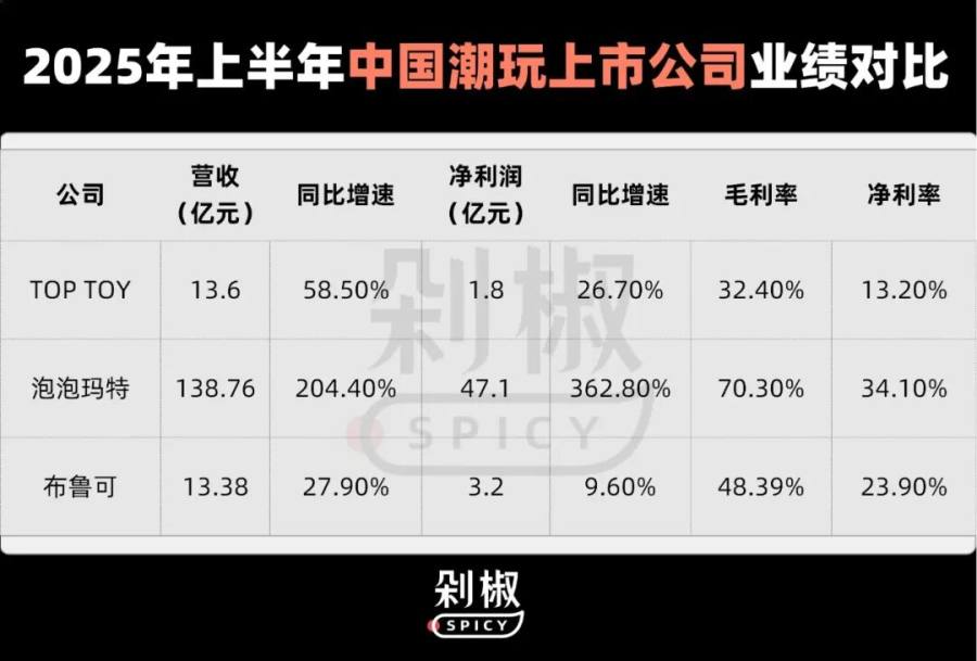 毋庸置疑,泡泡玛特是TOP TOY的最强竞争对手。招股书显示,2025年上半年,TOP TOY营收达13.60亿元,同比增速高达58.5%,展现出了飞快的增长潜力。然而,与行业龙头泡泡玛特(营收138.76亿元)相比,其营收体量仍有较大差距。
