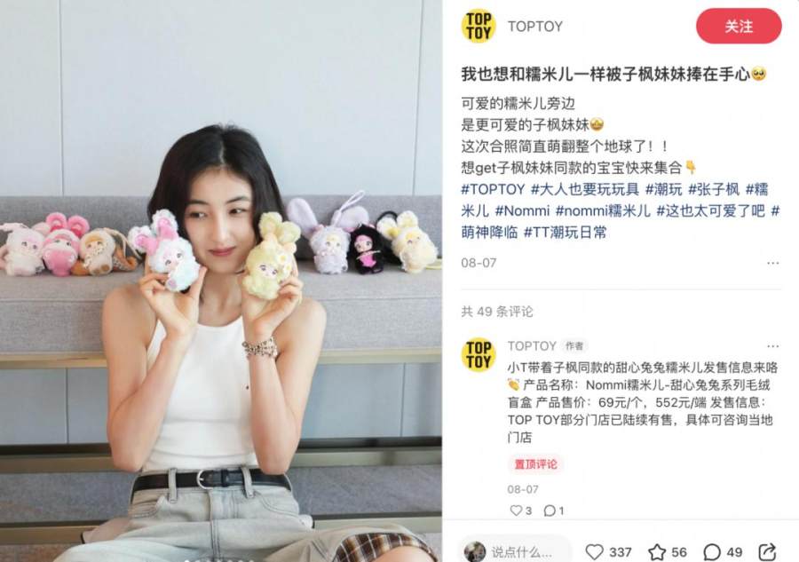 从短期声量看,Nommi糯米儿借助明星效应实现了“潮流破圈”,在五个月内创下破亿销量,并被董事长叶国富寄予厚望。但从本质看,这种策略更像是一场流量的豪赌。明星热度来得快,去得也快,一旦营销投入减弱,IP自身的生命力能否持续仍是未知数。