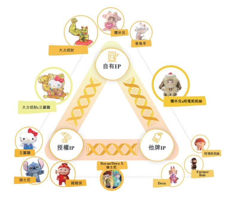 目前,TOP TOY拥有17个自有IP,包括卷卷羊、糯米儿、大力招财、尼尼莫等,及43个授权IP,包括三丽鸥、迪士尼、蜡笔小新、猪猪侠、新世纪福音战士等。而截至2025年6月30日,他牌IP总数已经超过600个,许多采购的产品亦通过TOP TOY的平台独家推出,比如机动战士高达。