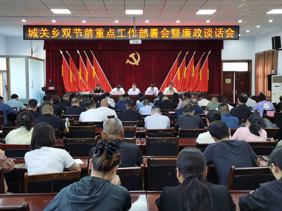 9月30日下午,荥阳市城关乡召开双节前重点工作安排部署会暨廉政提醒谈话会,乡党政班子成员、机关干部、乡直站所负责人、各村党支部书记共计150余人参加会议。会议由该乡党委副书记、乡长张喆主持。