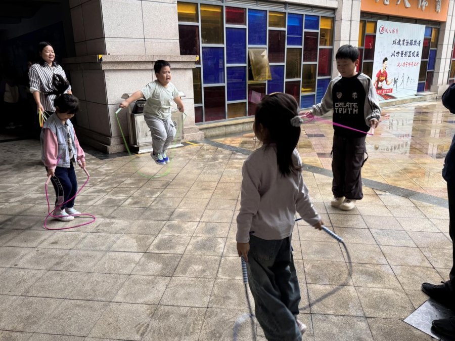 活动现场气氛热烈,欢声笑语不断。游园会精心设置了多项趣味运动项目,旨在唤醒不同年龄段居民的共同记忆,促进邻里互动。在“毽”舞飞扬区域,五彩的毽子在空中划出优美弧线,居民们技术娴熟,小朋友们初次尝试亦乐在其中,欢快的氛围随着毽子的起落弥漫开来。“绳”采奕奕跳绳区人气高涨,单人竞技与家庭接力跳相继上演,翻飞的跳绳与轻盈的身影交织,构成一幅充满活力的社区画卷,加油声、计数声与欢笑声此起彼伏。“圈”住快乐套圈游戏前同样排起长龙。居民们专注瞄准、巧妙投掷,无论是否套中心仪礼品,都能收获周围邻里真诚的喝彩与鼓励,简单的游戏拉近了彼此的距离。