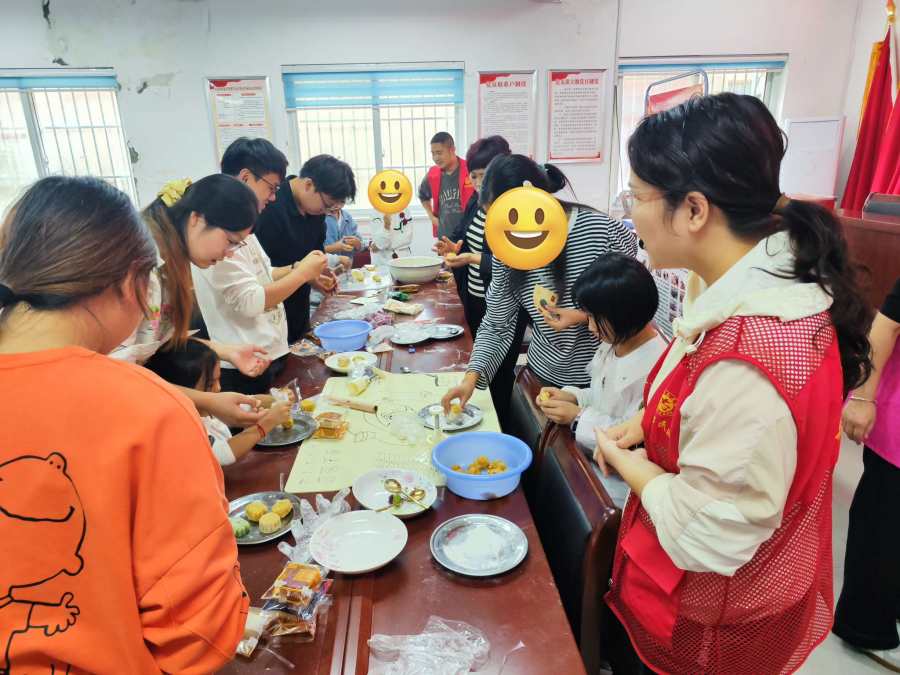 2025年10月3日下午,新郑市民政局“物质+服务”项目中心城区民政服务站联合和庄镇小岗王村,在小岗王活动室开展“双节同庆,手作团圆——冰皮月饼DIY”主题活动。活动以“绿城有爱”为纽带,将双节民俗、手工体验与团体心理疏导深度融合,邀请30位小朋友与大人参与,用温馨互动传递节日关怀与心灵慰藉。