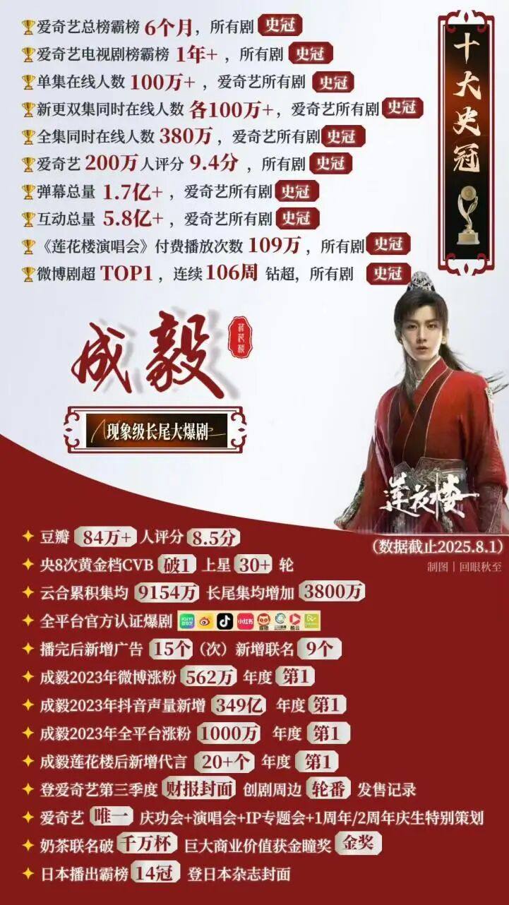 事实上,成毅作为收视保证的市场号召力,早已在2023年的爆款《莲花楼》中埋下伏笔。彼时,他饰演的李莲花不仅以豆瓣8.0+的高分成为观众心中的白月光,更以一场衍生周边金额突破千万的实绩,提前预定了“新武侠标杆”的席位。