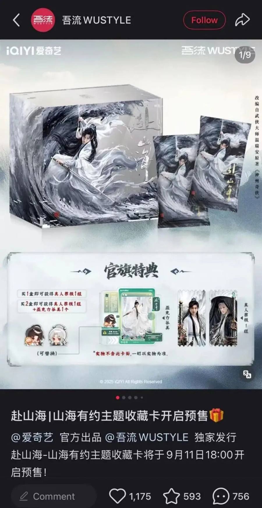 在此基础上,市场价值自然水到渠成。成毅完成了从带动观剧到驱动消费的完整闭环。他不仅为剧集贡献热度,更通过个人与角色的深度绑定,成为连接剧情与现实消费的关键节点。从《莲花楼》的千万级周边销售,到《赴山海》所掀起的联名礼盒抢购风潮,均印证了成毅主演这一标签所具备的商业能量——它能够有效驱动IP全产业链的变现能力。