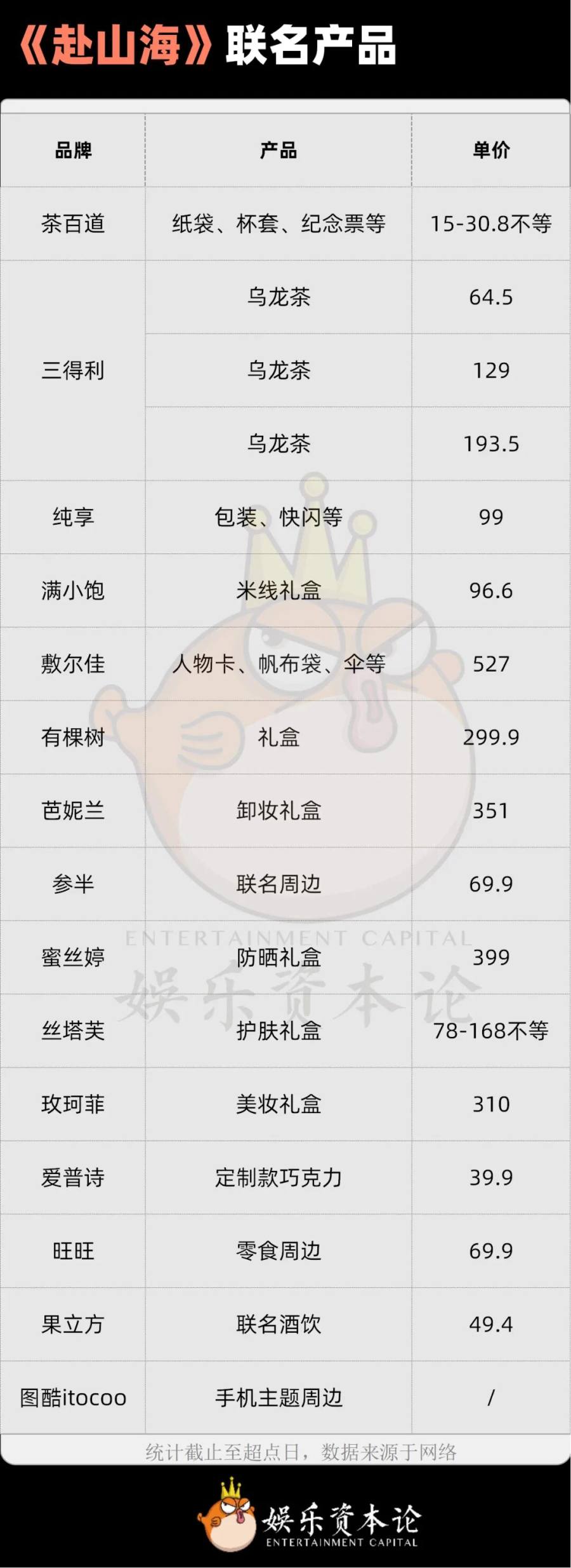 这一系列良好的播出成绩,使得《赴山海》不仅仅停留在一部影视作品的层面,而是迅速延伸到了周边产品和联名合作,成为了现象级的IP产品。
